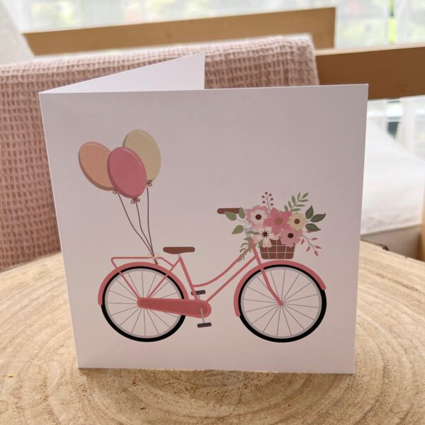 Cette carte de vœux avec un joli vélo, d’un format de 14 x 14 cm pourra accompagner vos cadeaux ou être envoyées avec un gentil mot, à la personne désirée.