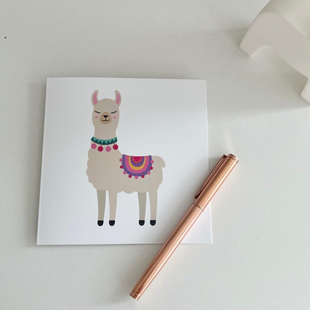 Cette carte de vœux au motif de lama, d’un format de 14 x 14 cm pourra accompagner vos cadeaux ou être envoyées avec un gentil mot, à la personne désirée.