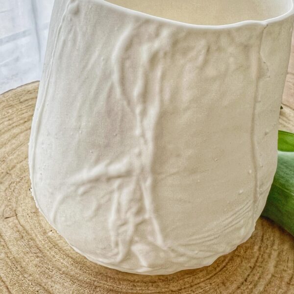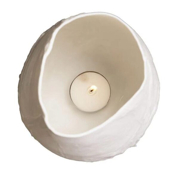 Objet design à l’état brut, elle devient magnifique et poétique lorsque la flamme d’une bougie brille à travers la porcelaine.